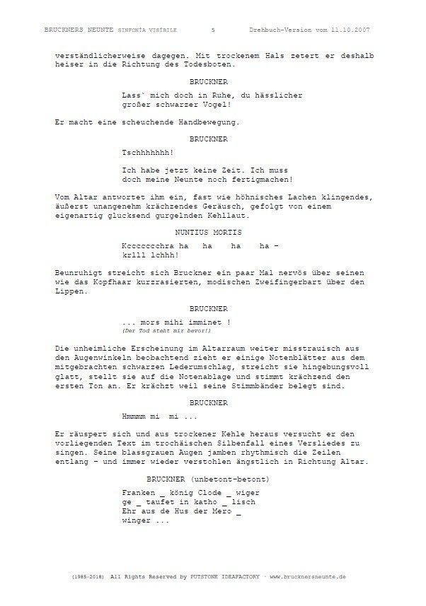 Walter Wilhelm Legenstein: For me as a screenwriter, this incredibly inspiring Bruckner symphony from the 19th century is not, as officially and completely misunderstood due to the missing final movement, an "Unfinished" symphony, but rather the first symphony that cannot be completed by human hands, i.e., "Unfinished" symphony - in unison with the ever-present eternal creation.