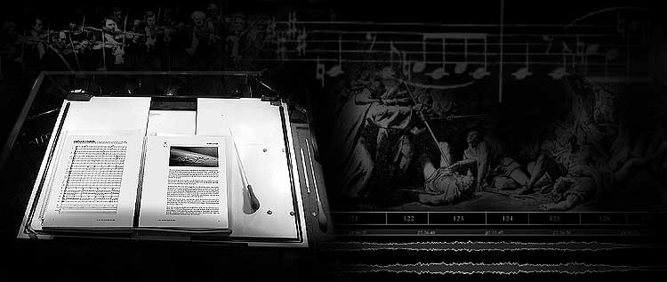 Lacking a suitable orchestra of my own, after reviewing various recordings of the Ninth Symphony, I used the analog recording of Bruckner's Symphony No. 9 by Karajan and the Berlin Philharmonic from 1976 and first "stretched" it in the recording studio using digital techniques to bring out these musical ideas (e.g., overtones) of the composer, which are important for visualization but had previously been neglected. Furthermore, I could now hear the dialogues much more clearly (one instrumental group calls out – another answers) and thus better assign them to synonymous symbolic scenes.