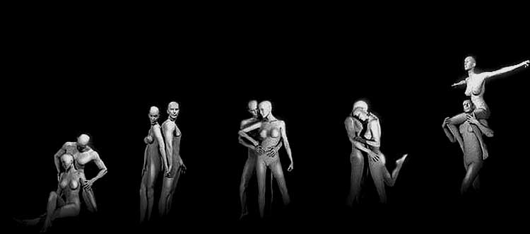 Anatomy: As early as the 1980s, I tried to create artificial beings with realistic anatomical structures of their real-life human models, as in the old Viennese school of painting, working from the inside out. This has the advantage that, if the skeletal structure and muscles are already accurate, these beings move very realistically. (See below).